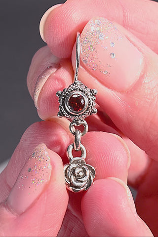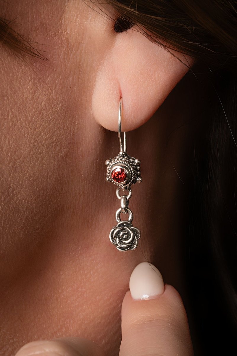 Sterling Silver Roses Red Velvet Mystic Moissanite Single Stone Dangle Earrings With Sarda Safety Latch™ 0.38 ctw