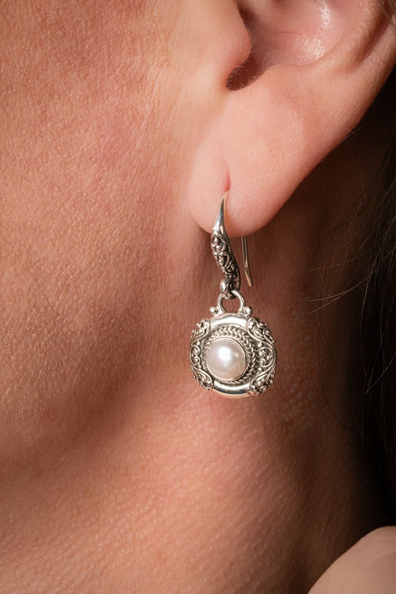 Sterling Silver Janyl Adair Freshwater Pearl Single Stone Dangle Earrings With Bali Wire™