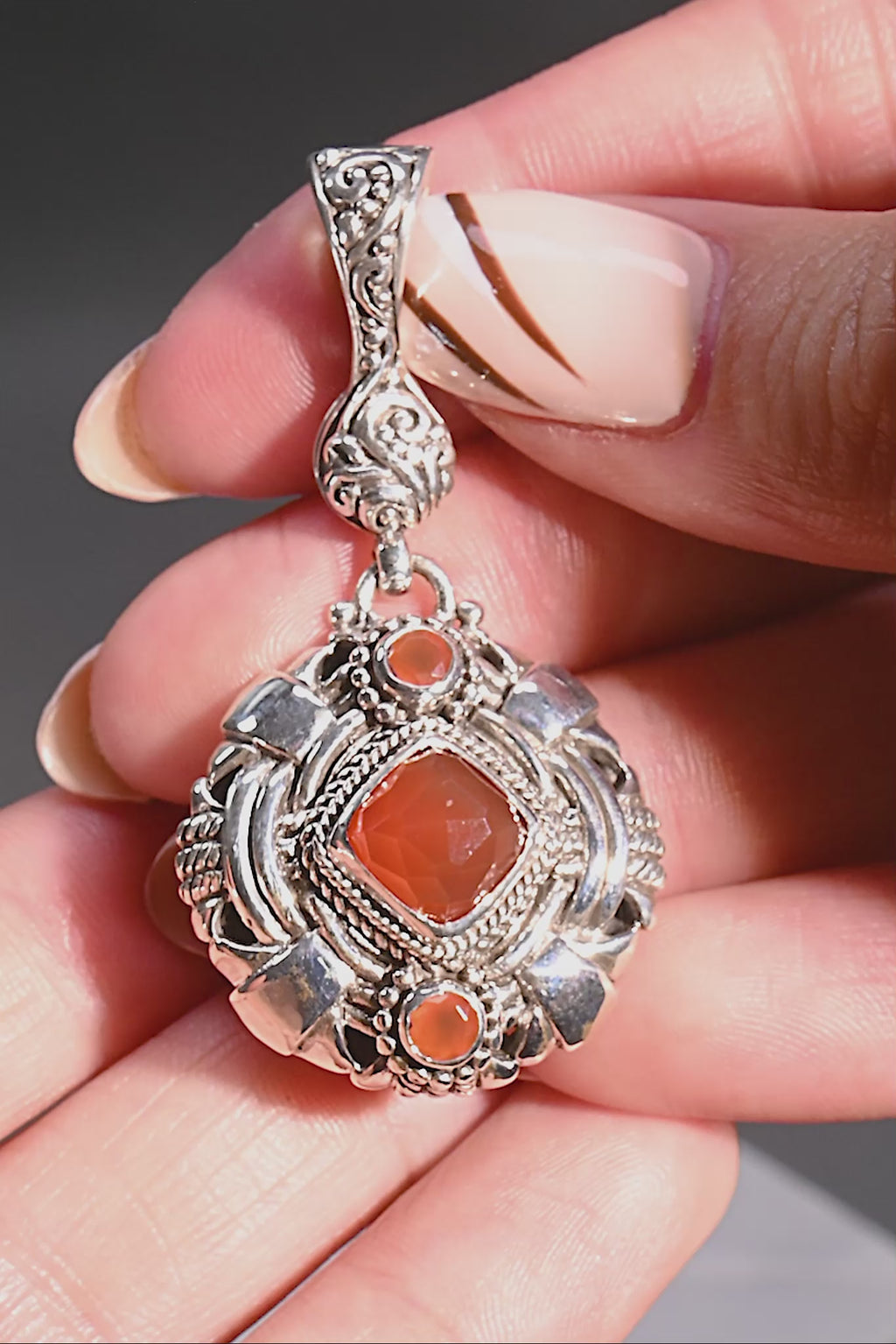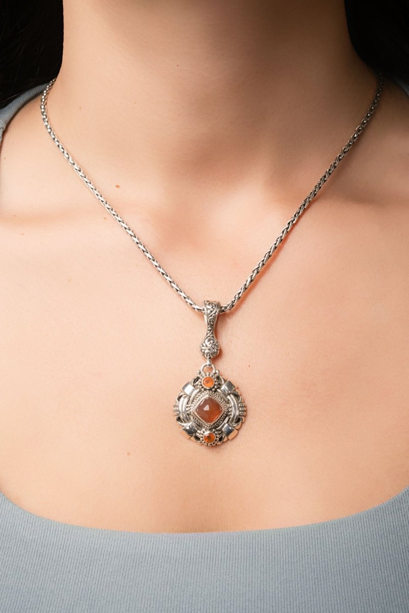 Sterling Silver Tree Of Life & High Polish Carnelian Pendant With Magnetic Enhancer Bail™