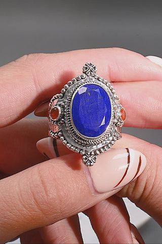 Sterling Silver Hammered Lapis & Carnelian Ring™