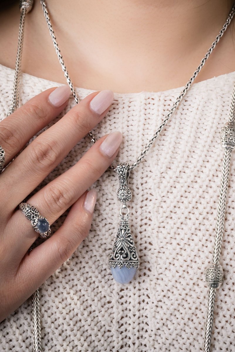 Sterling Silver Tree Of Life & Janyl Adair Blue Lace Agate Single Stone Pendant With Magnetic Enhancer Bail™