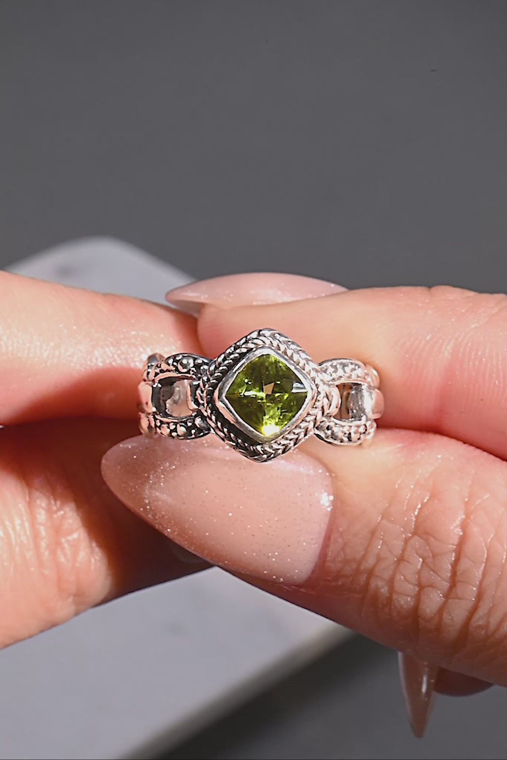 Sterling Silver Bamboo & Flat Jawan Peridot Ring™