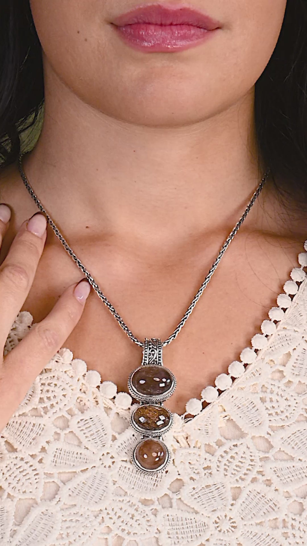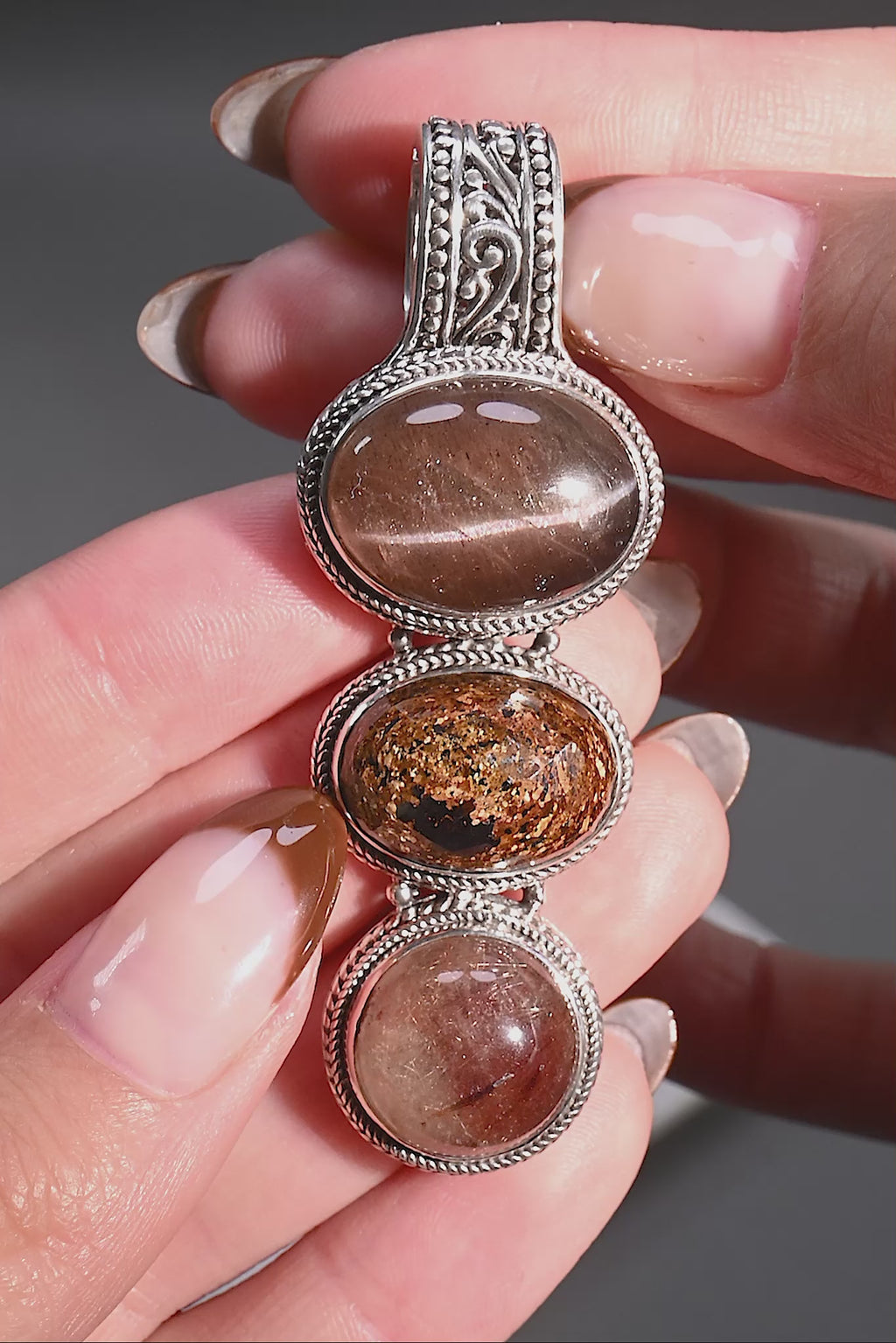 U R My Strength Pendant™ in Cat's Eye Crystal Quartz, Bronzite & Galaxy Rutilated Quartz