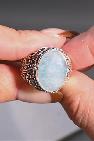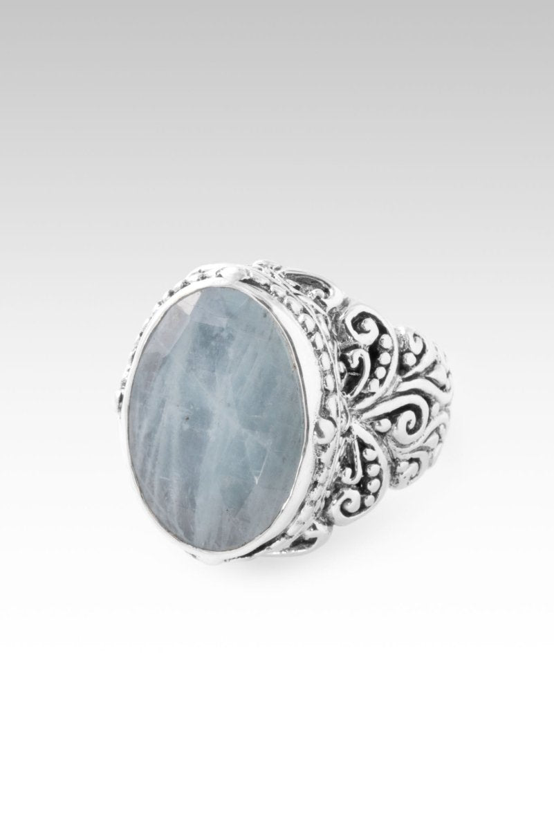 Sterling Silver Tree Of Life & Hammered Aquamarine Ring™
