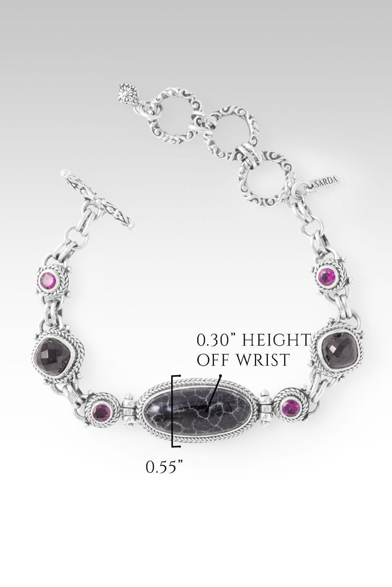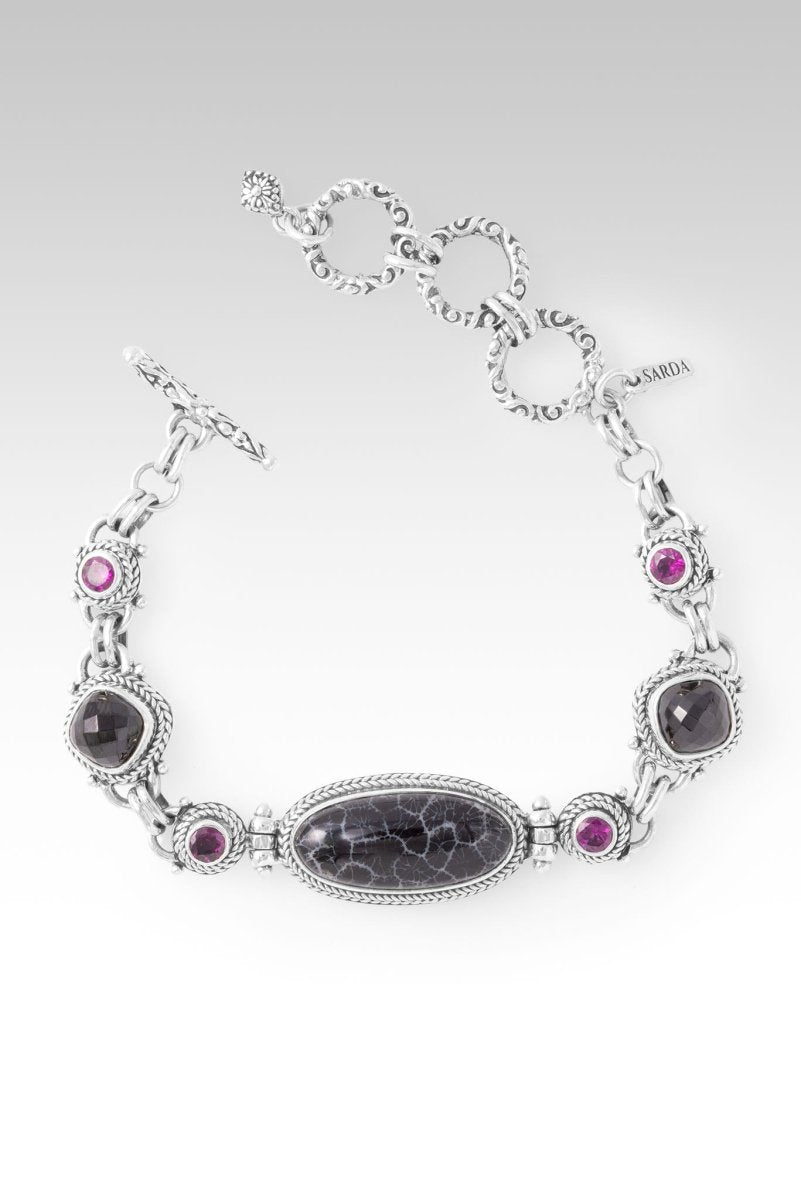 Sterling Silver Tree Of Life Black Indonesian Coral, Black Spinel & Rhodolite Garnet Adjustable Multi Stone Toggle Bracelet