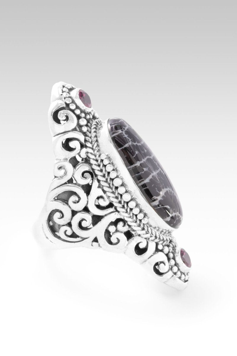 Your Mess, Is His Healing Ring™ in Black Indonesian Coral & Rhodolite Garnet