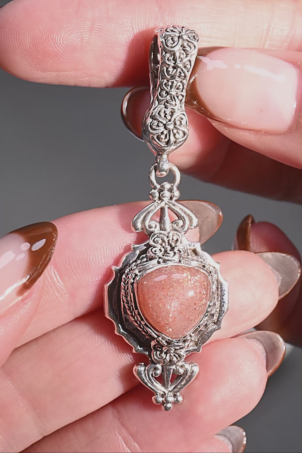 Sterling Silver Frangipani Peach Sunstone Single Stone Pendant With Magnetic Enhancer Bail™