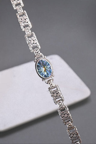 Sterling Silver Watermark & Chainlink Cockatoo Daze™ Mystic Quartz Adjustable Single Stone Multi Link Lobster Claw Bracelet™