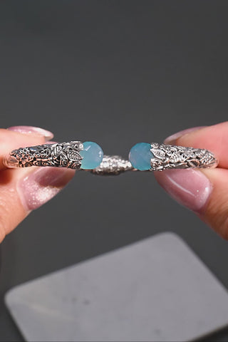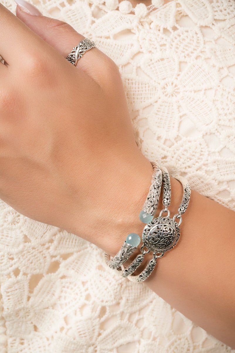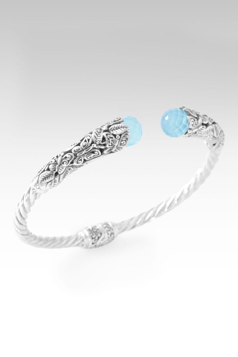 Sterling Silver Leaves & Butterflies Paraiba Chalcedony Oval Tip-To-Tip Cable Bracelet With Retention Hinge™