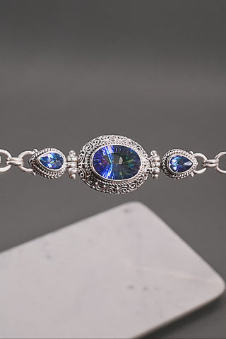 Sterling Silver Tree Of Life Odyssey Universe™ Mystic Quartz, Sheer Luck™ Mystic Topaz & Sleeping Beauty Turquoise Adjustable Multi Stone Toggle Bracelet™
