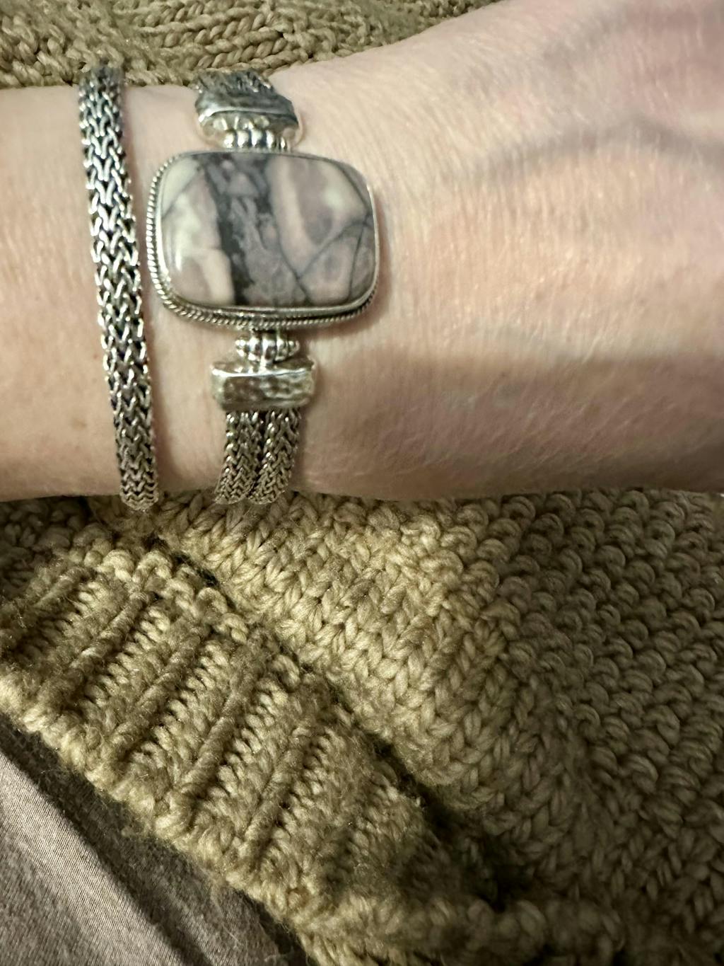 The elegance of the Porcelain Jasper Bracelet, The unique colors & patterns make each piece one of a kind. A Statement piece for any outfit you choose to wear. When you need to be grounded with earth, what a wonderful piece to be able to keep you centered. It has a Magnetic closure. I don’t believe I will just one of these.