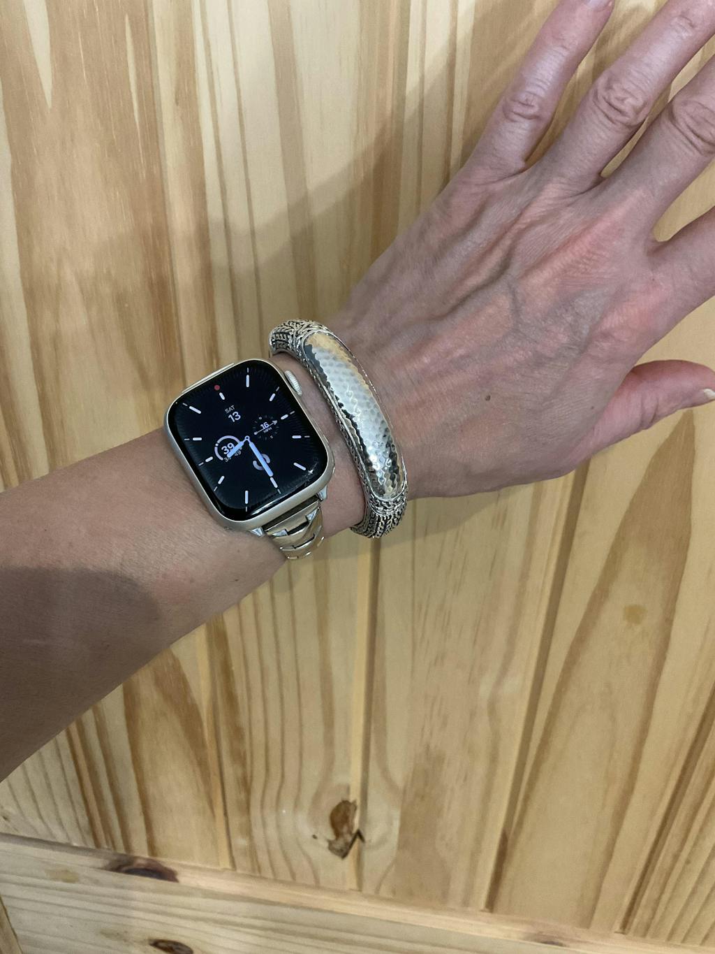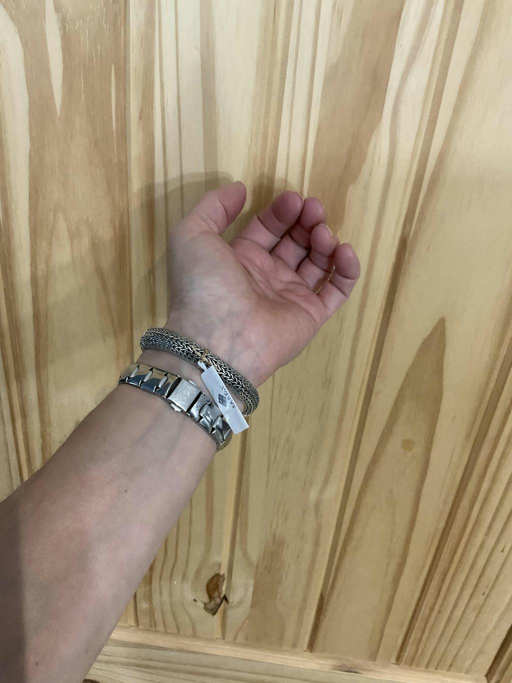 I had my eye on this bracelet for a long time...... I finally was able to purchase this one and it did not disappoint. It is not heavy but a very nice size that is noticeable. I have worn it flipped around both ways and absolutely love this bracelet - wear it alone or stack more with. This is an everyday LUXURY bracelet. :) Thank you Sarda/Janyl :)