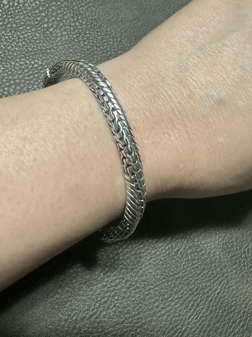 This chain bracelet is quality, from the design to the amazing workmanship. It is a bracelet that easily stacks with other bangles and cuffs. A worthy investment which I've been wearing everyday since I received it.