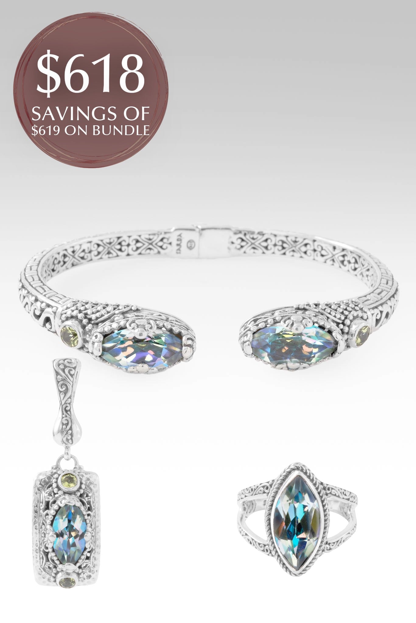 My GOD Will in Green Reflections™ Mystic Quartz Bundle (Size 7 Ring & Size 7.25 Bracelet)