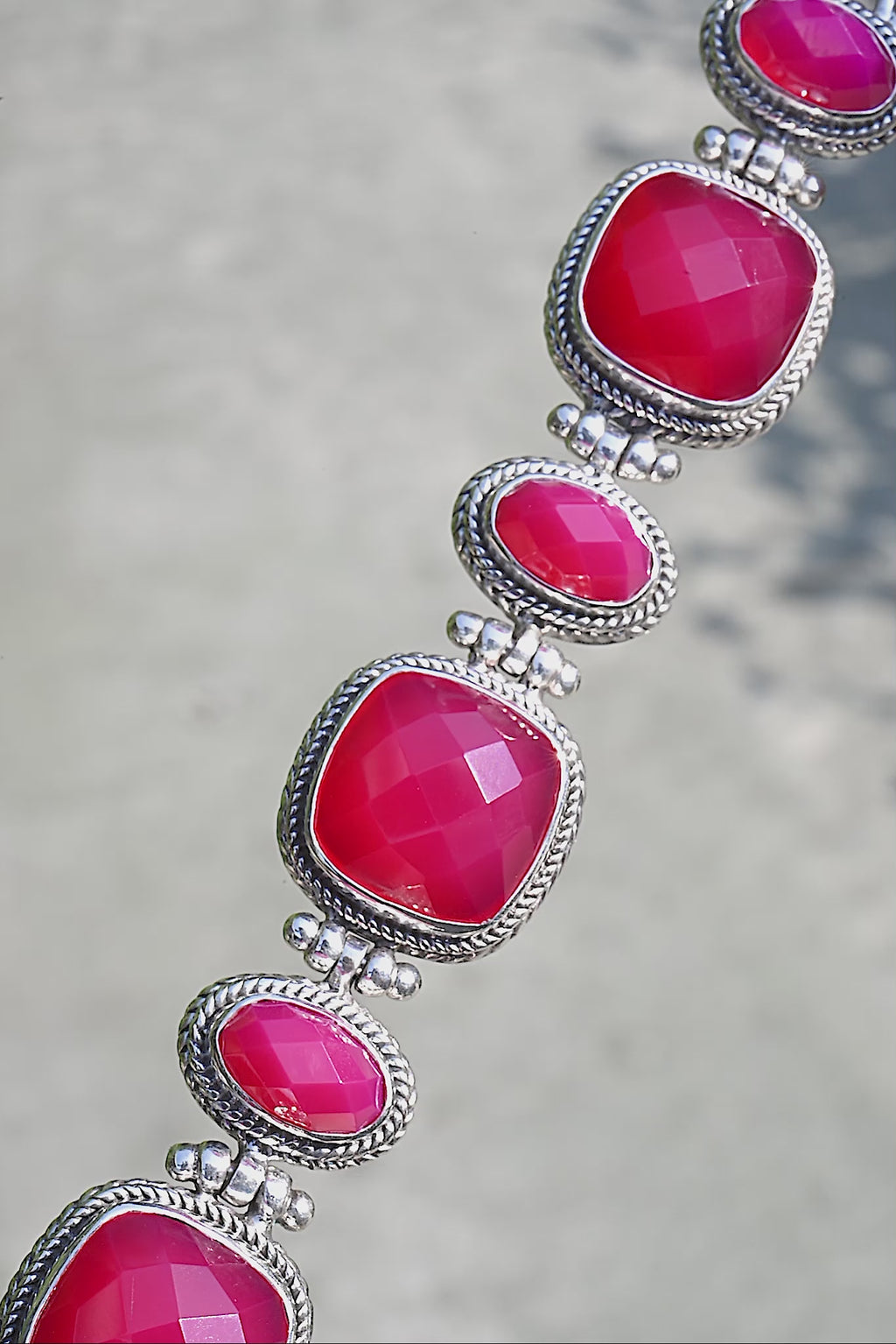 Sterling Silver Wild Raspberry Chalcedony & Red Currant Quartz Adjustable Multi Stone Toggle Bracelet™