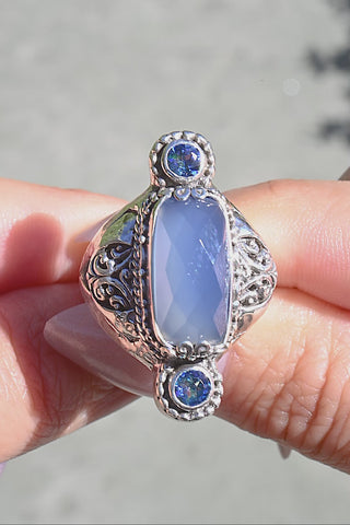 Infinite Trust Ring™ in Serenity Blue Chalcedony & Sheer Luck™ Mystic Topaz