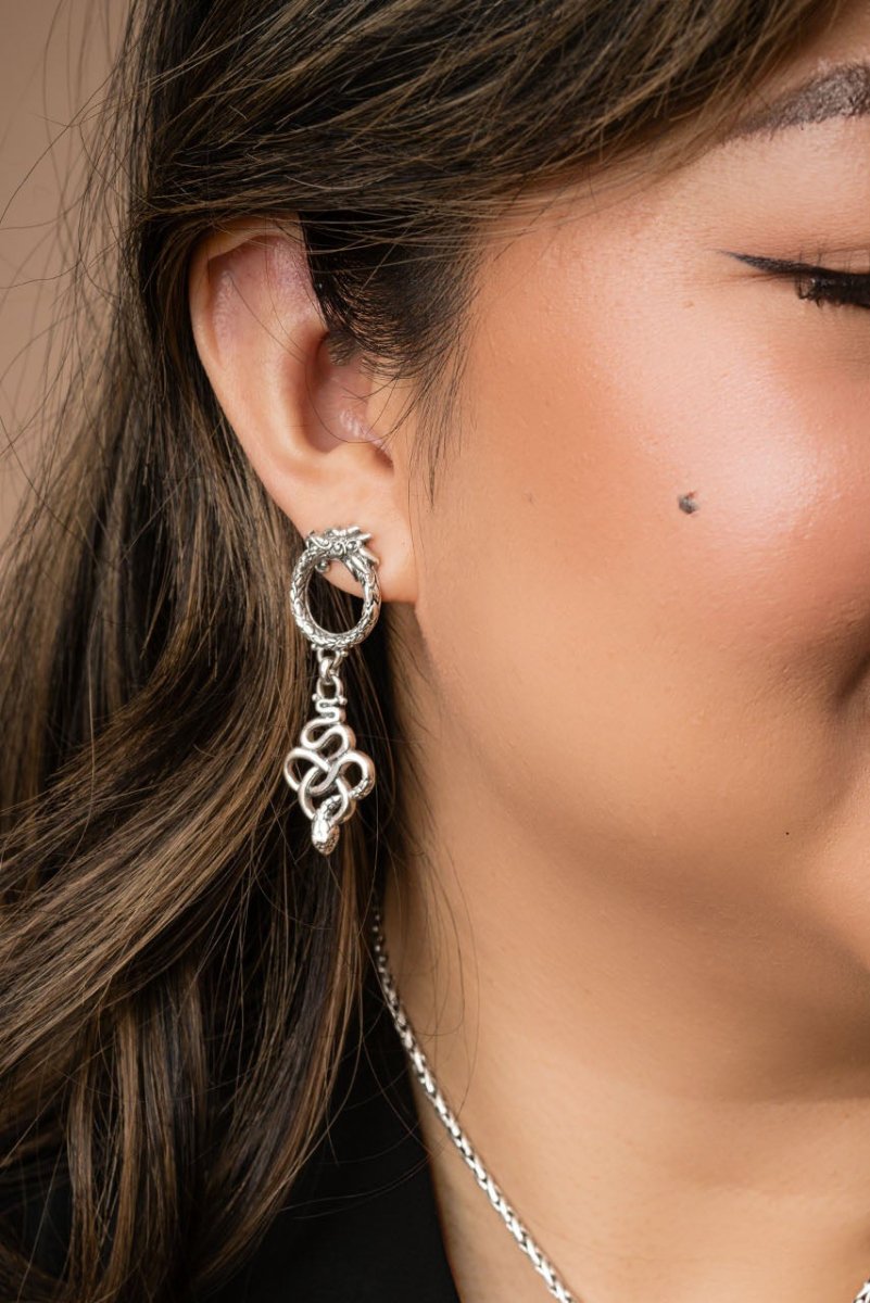 Sterling Silver Dragon & Snake Stud Dangle Earrings™