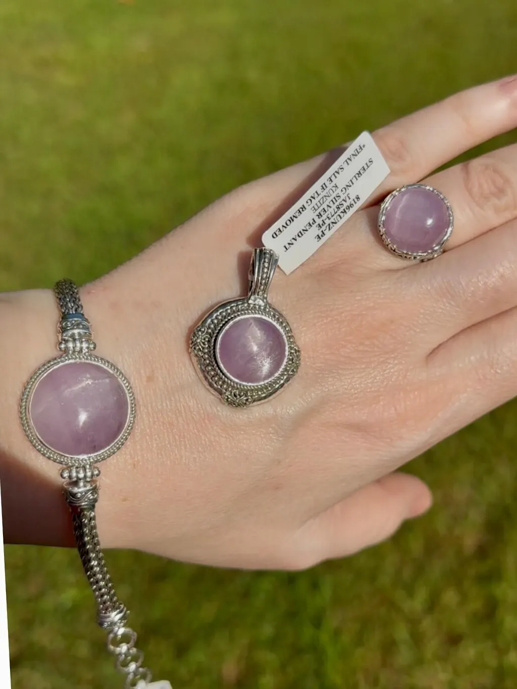 This bracelet is absolutely dazzling on the wrist! The stone is large with a beautiful shimmer of pink light from within! It is such a perfect match to my other kunzite pieces!