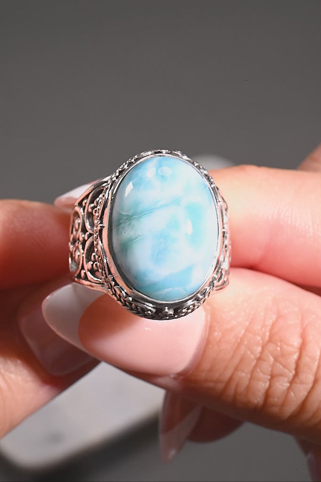 I LOVE LARIMAR!!! I wasn't disappointed with this ring!!! The setting is beyond words beautiful!!!!