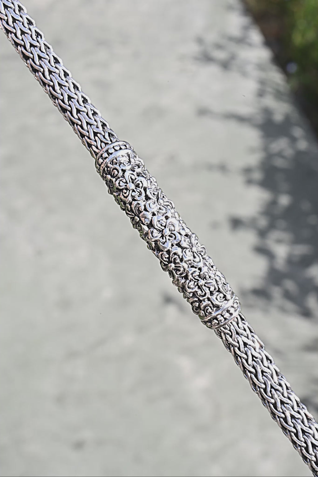 Due to the nature of the every piece being handmade this requires every single jump ring to be hand soldered. Total Piece Weight may represents the total amount of .925 silver not the actual total piece weight.