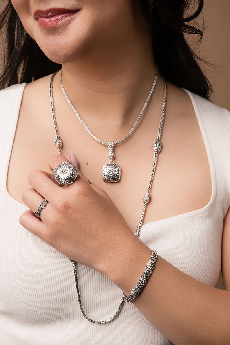 Because of the nature of SARDA’s individually handcrafted sterling silver jewelry, silver weights are approximate and may have slight variances from the listed silver weight description. No two pieces are identical as our jewelry is handmade and finished.