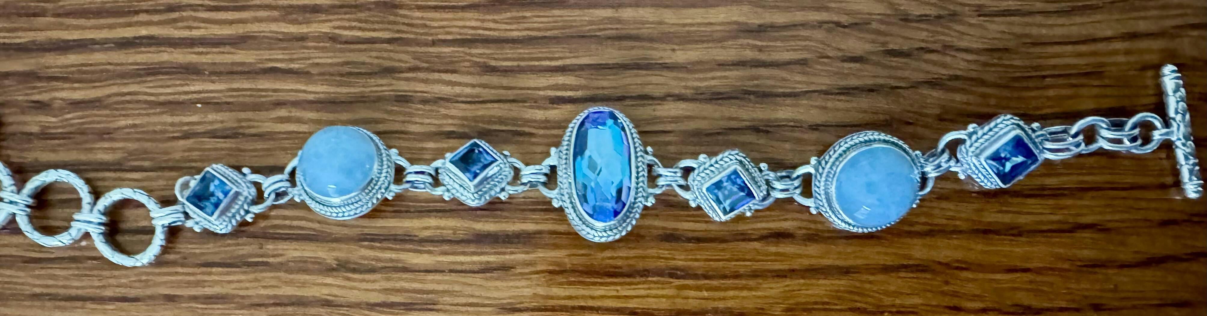 I had had my eye on this bracelet after purchasing a complimentary bangle earlier and was thrilled to get a great deal on this one. The blue stones are gorgeous and all pair so well. Love that it has the aquamarine stones to match pendant and rings I have. Very comfortable and nice fit. Very pleased.
