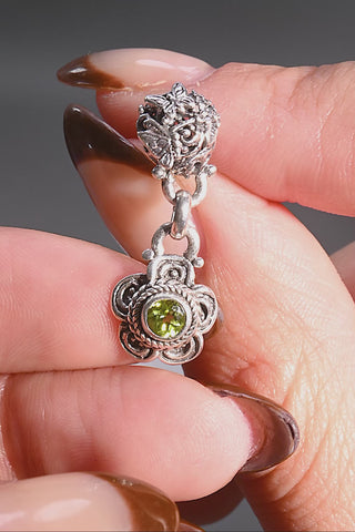 Sterling Silver Frangipani & Butterfly Peridot Single Stone Stud Dangle Earrings™ 0.38 Ct.