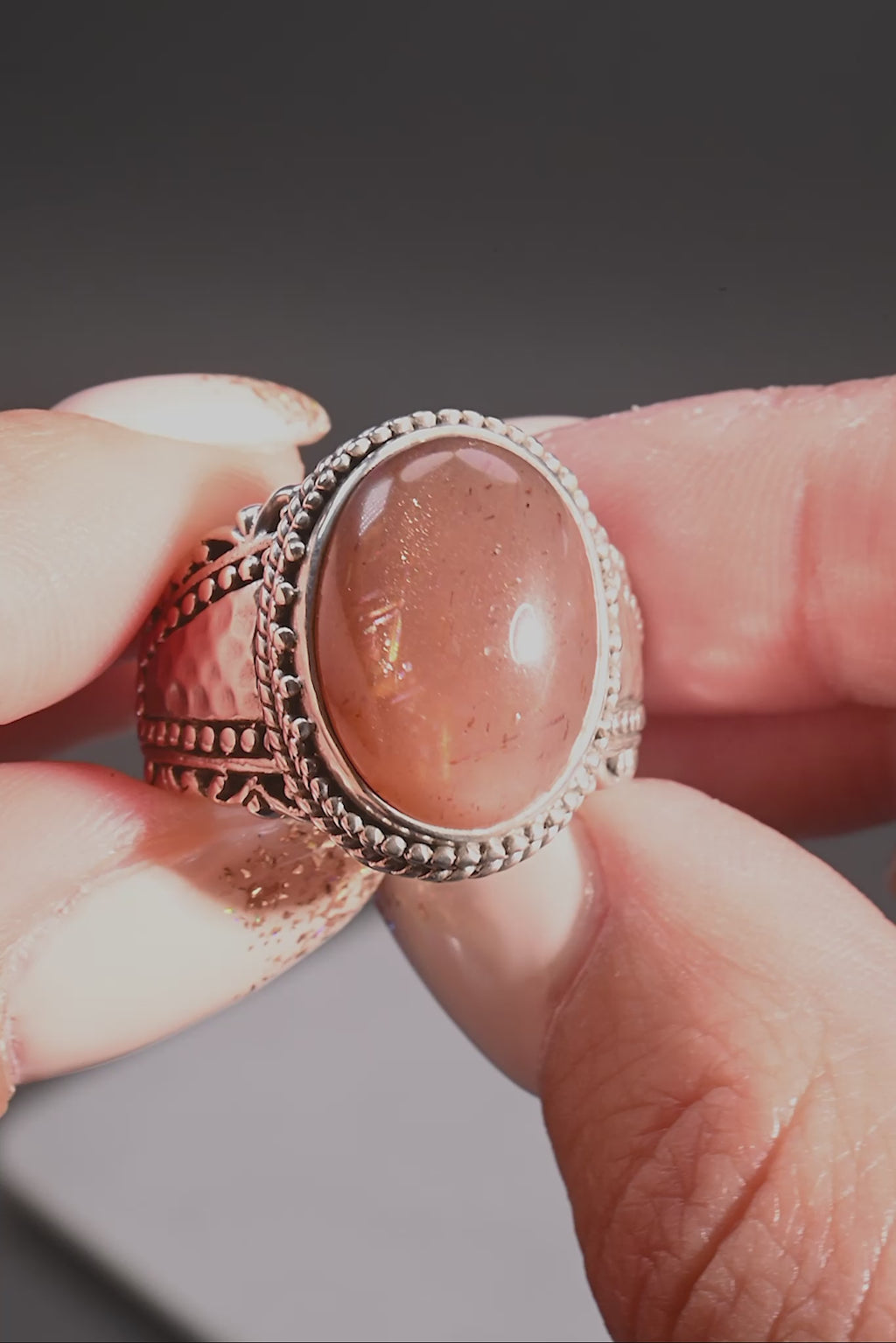 Sterling Silver Tree Of Life & Hammered Latte Sunstone Ring™