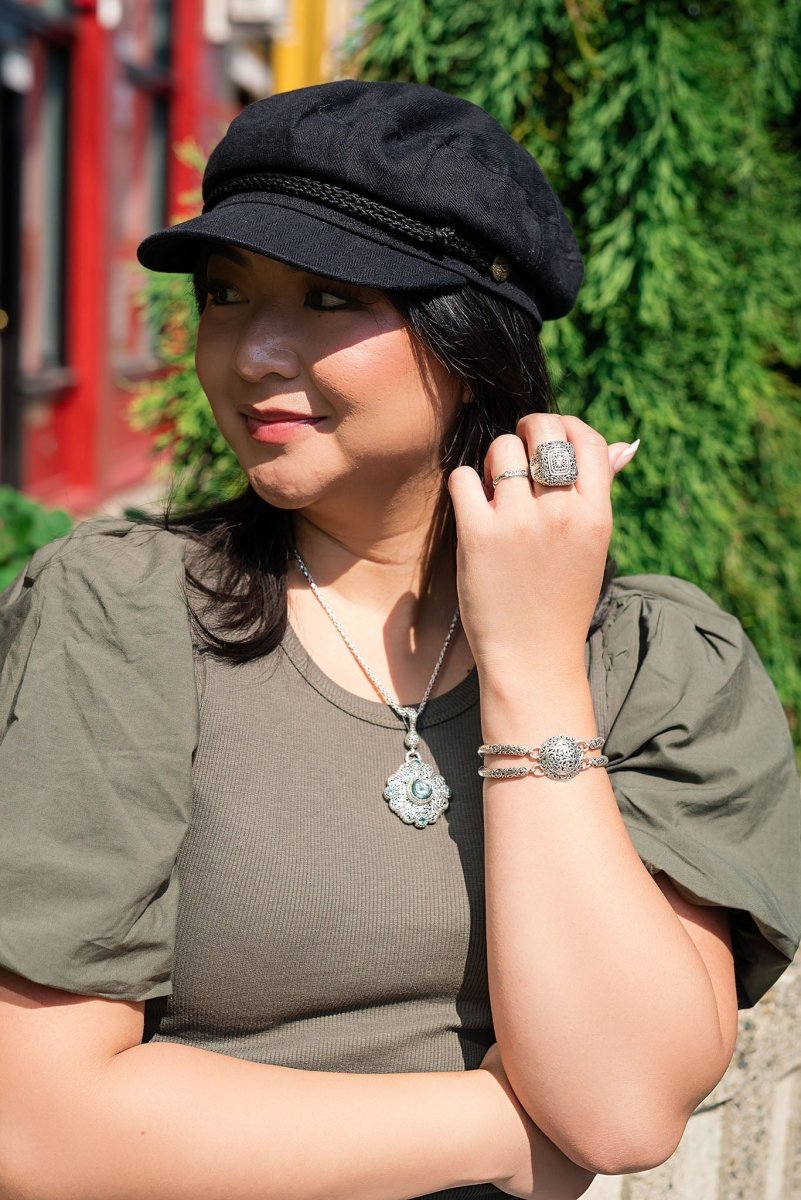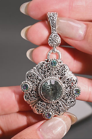 Sterling Silver Tree Of Life & Hammered Biggering™ Mystic Quartz & Bali Crush™ Mystic Topaz Multi Stone Pendant With Magnetic Enhancer Bail™