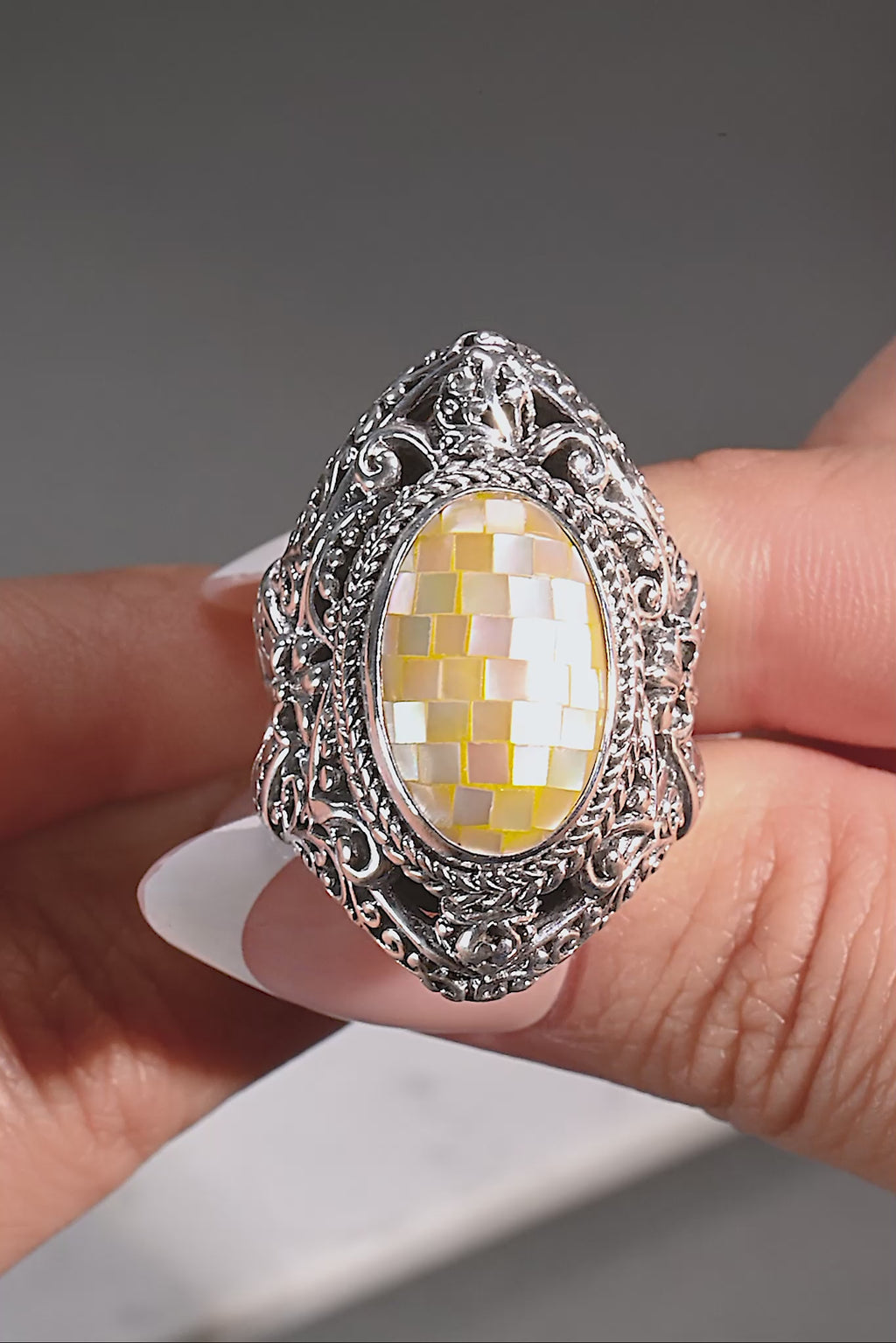 U R My Deliverer Ring™ in Golden Mother of Pearl Mosaic