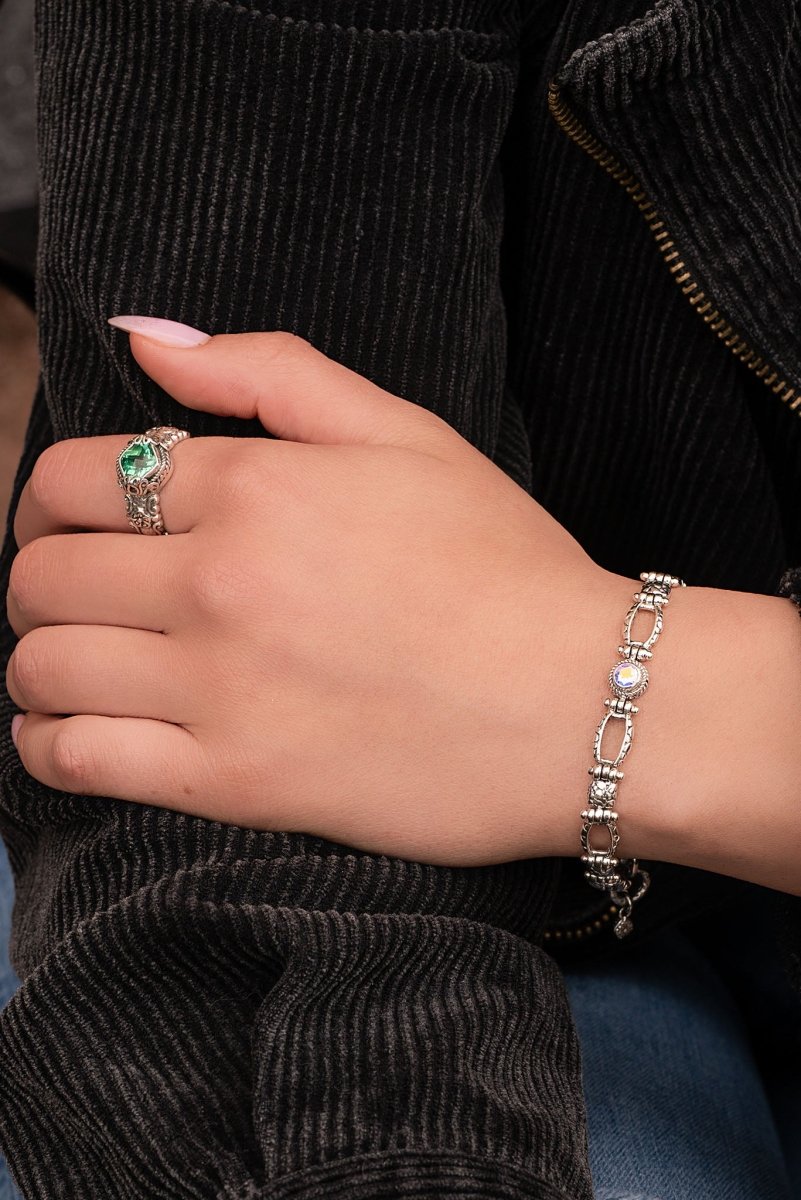 Sterling Silver Watermark Mercury Mist™ Mystic Topaz Adjustable Single Stone Multi Link Toggle Bracelet™