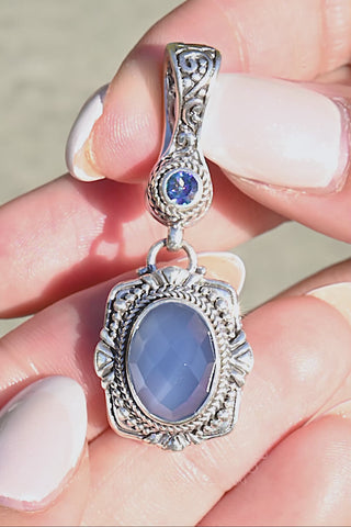 U R A Blessing Pendant™ in Serenity Blue Chalcedony & Sheer Luck™ Mystic Topaz