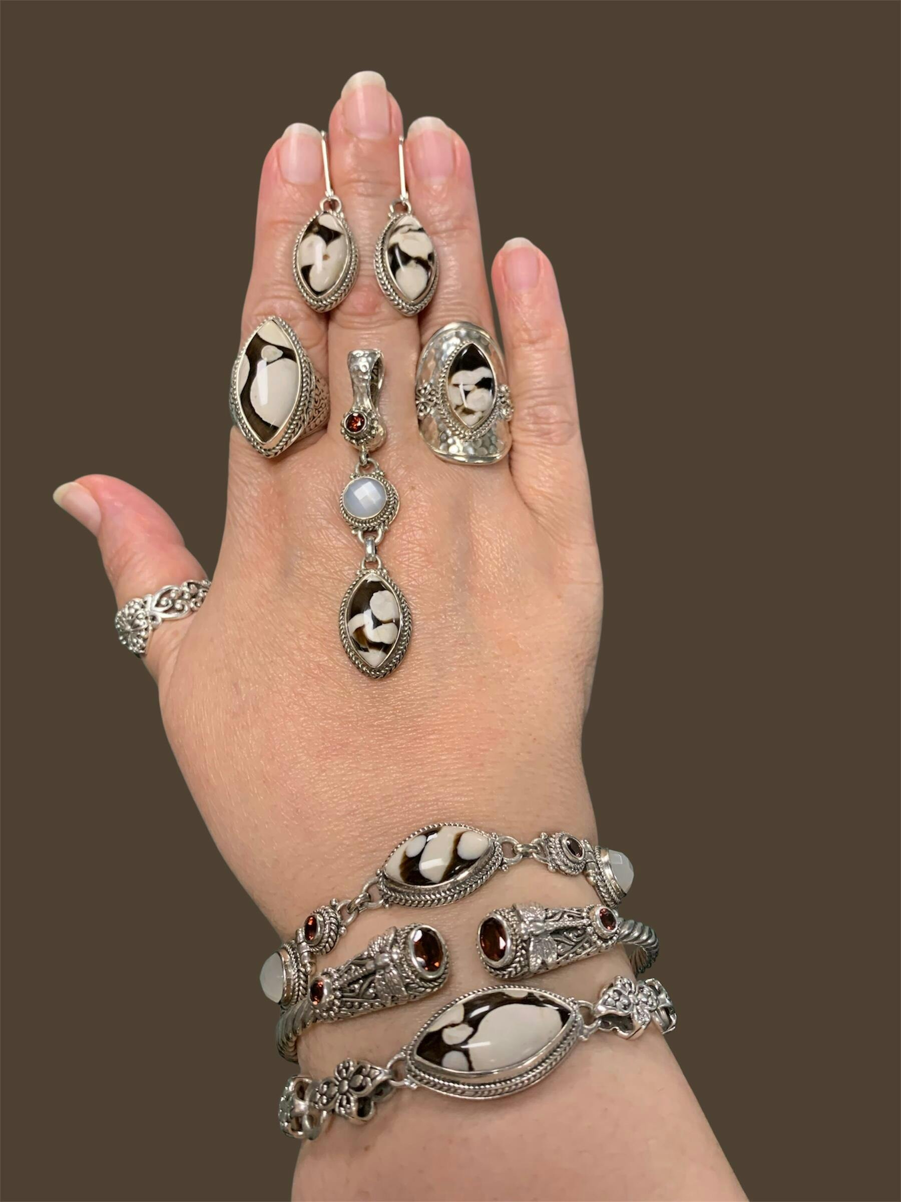 Sterling Silver Janyl Adair & Hammered Peanut Wood Adjustable Single Stone Toggle Bracelet™