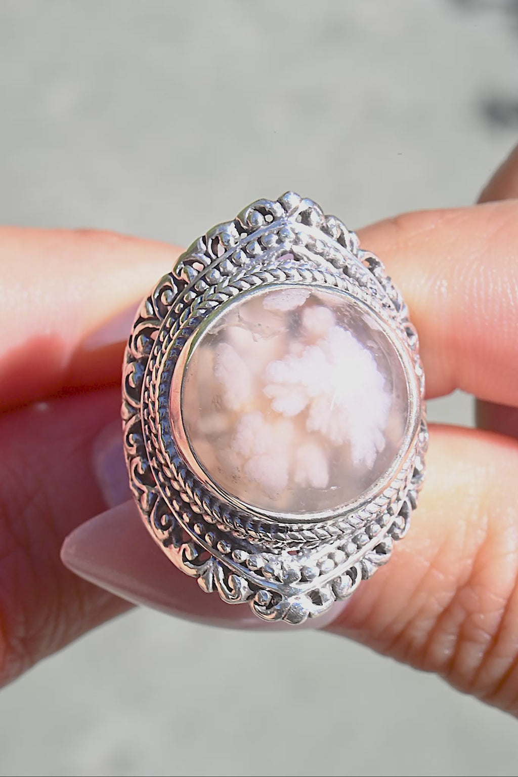 The flower agate ring is stunning. I love organic stones and the stone is so unique.Janyl never disappoints. Thank you