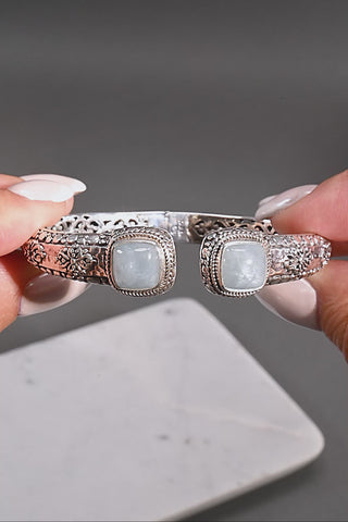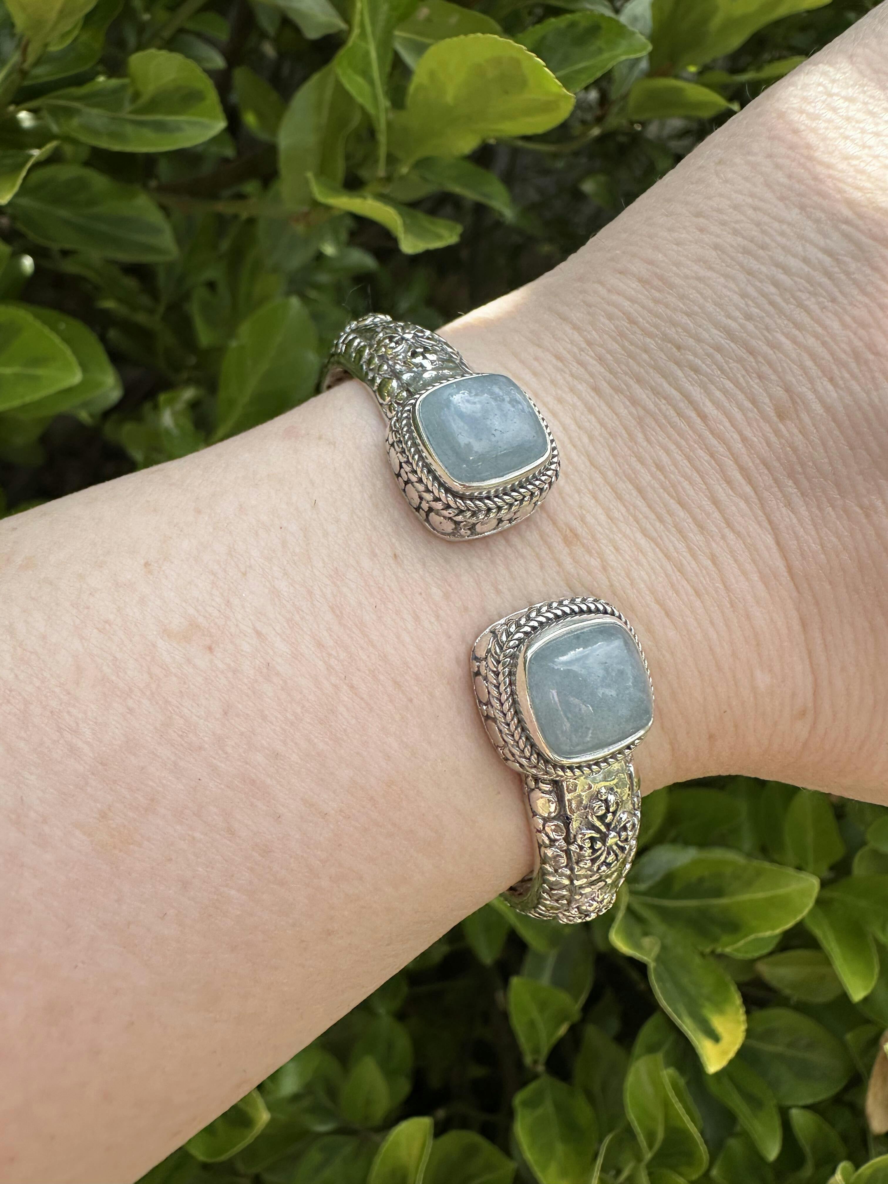 Sterling Silver Janyl Adair & Hammered Aquamarine Oval Tip-To-Tip Bracelet With Retention Hinge™