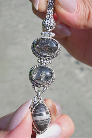 Sterling Silver Janyl Adair Black Zebra Jasper, Black Tourmalinated Quartz & Sagenitic Quartz Multi Stone Pendant With Magnetic Enhancer Bail™