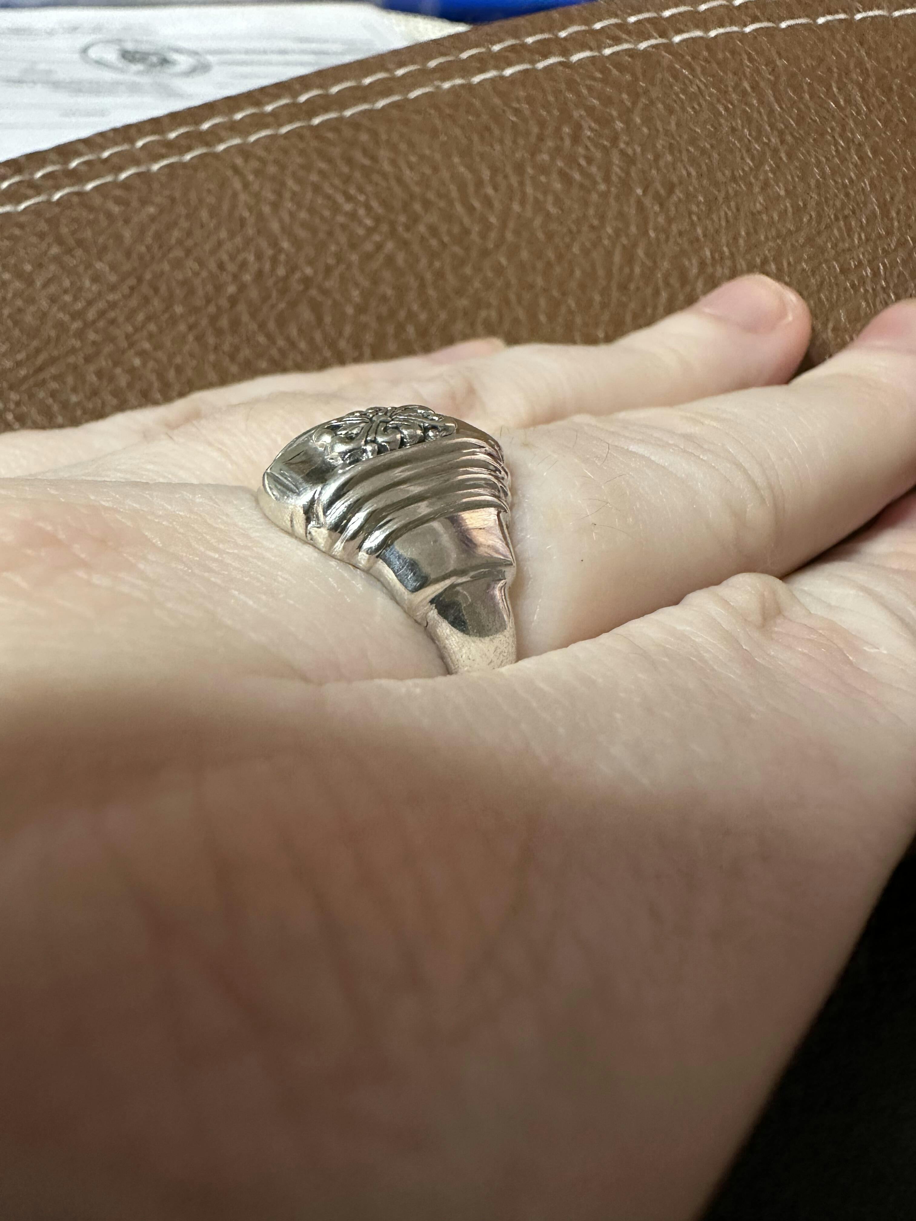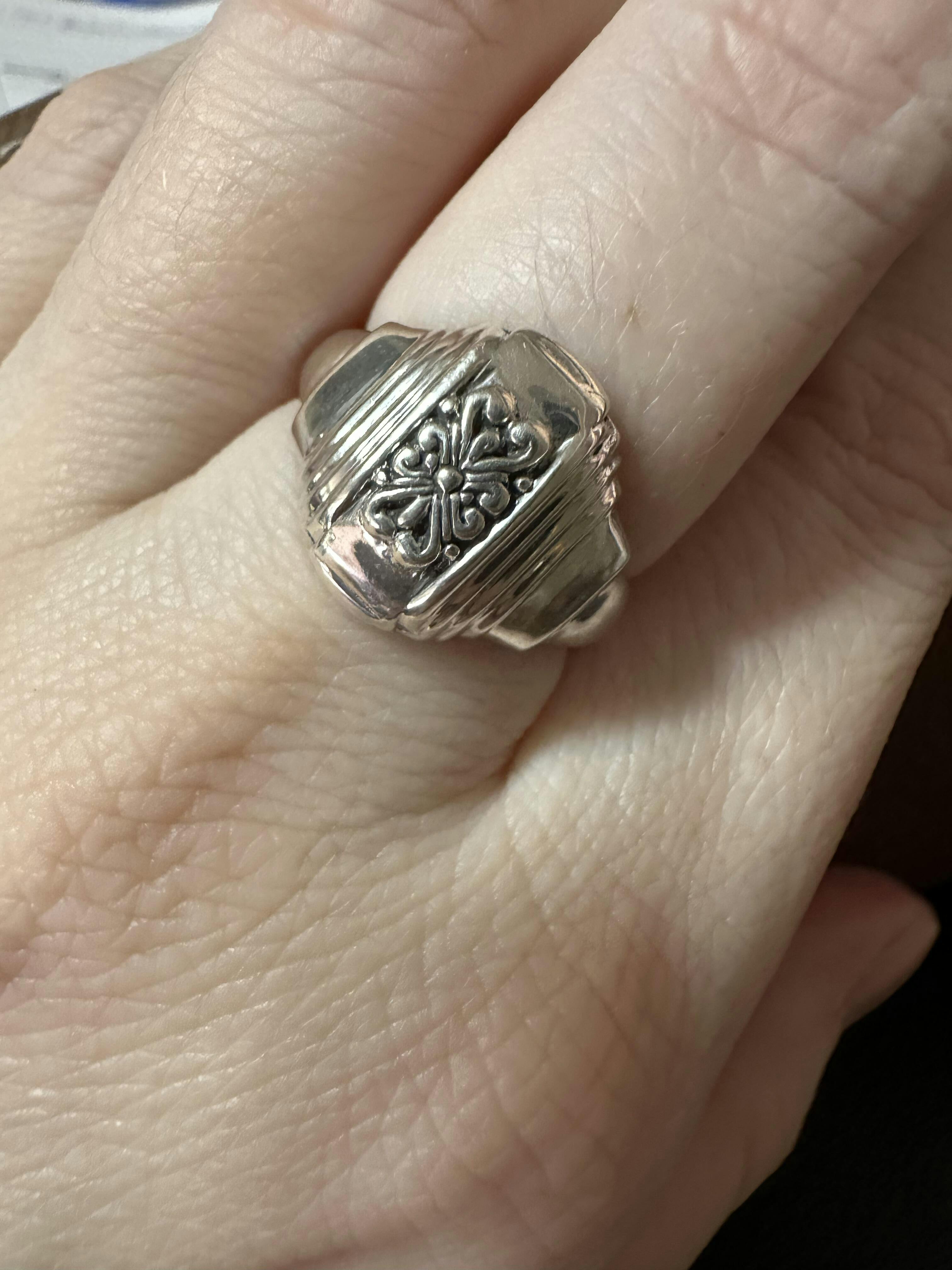 Sweet low profile ring with the Adair motif. Super comfortable on!