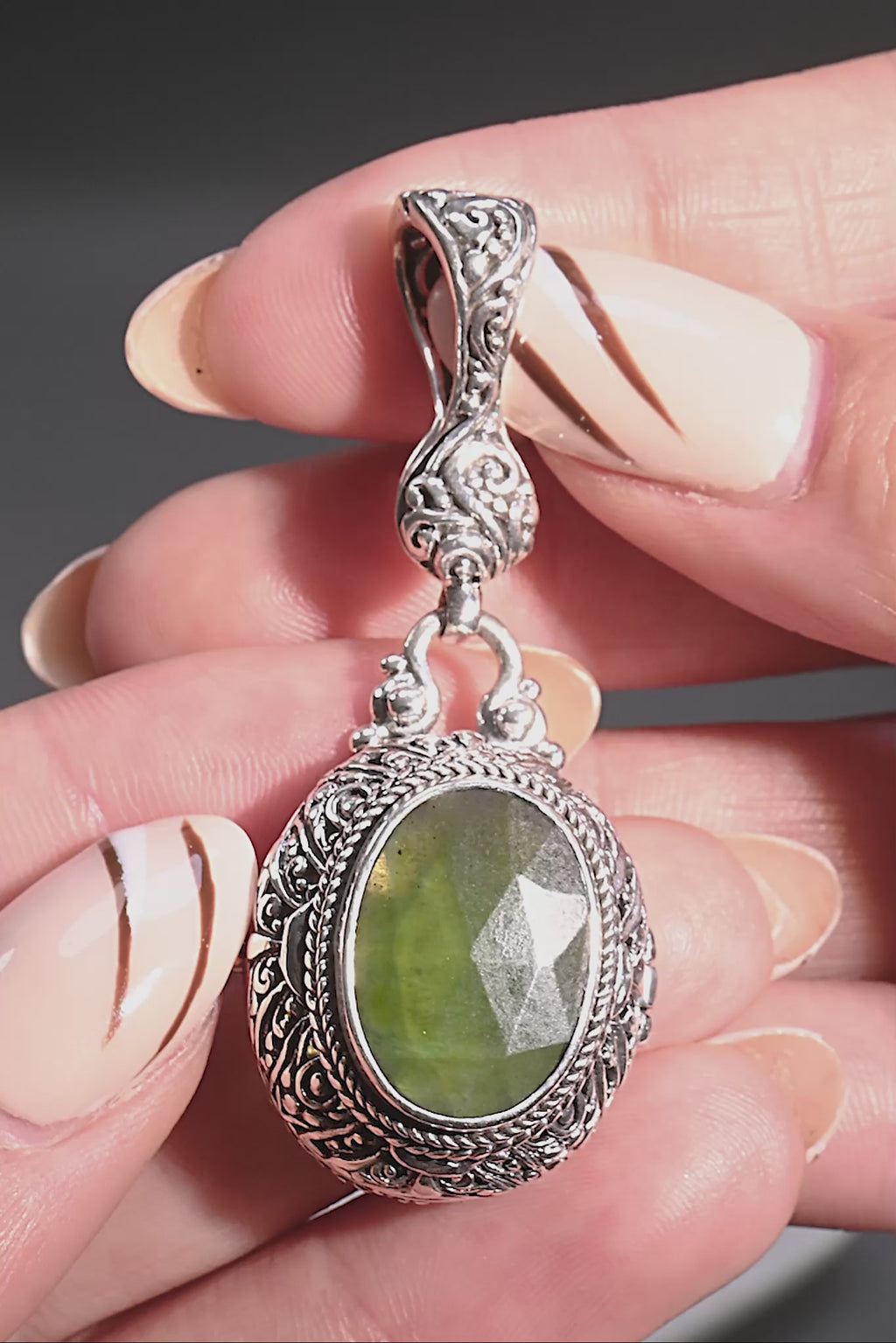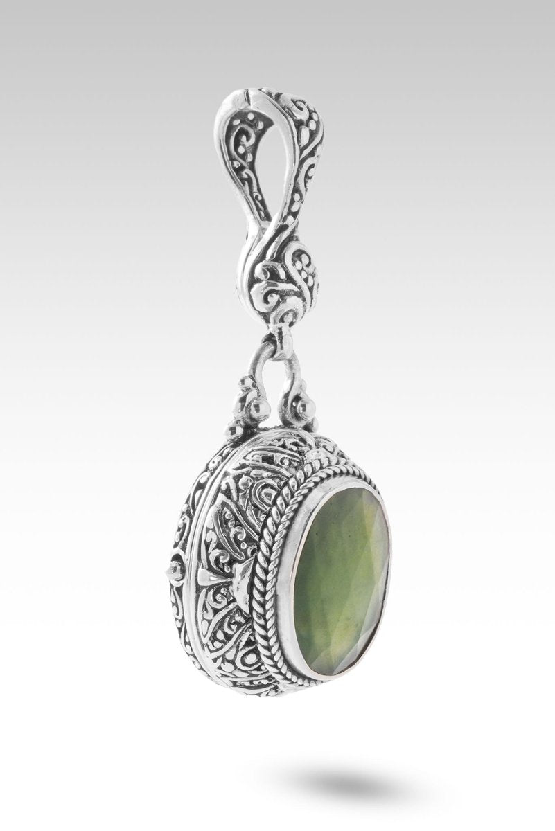 Sterling Silver Tree Of Life Green Serpentine Single Stone Locket Pendant With Magnetic Enhancer Bail™