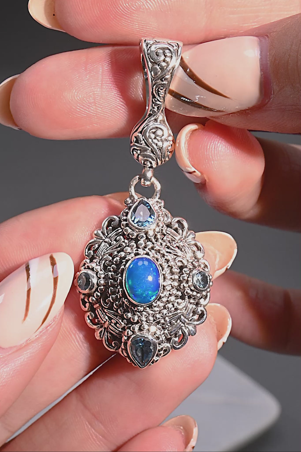 UR My Saving Grace Pendant™ in Paraiba Ethiopian Opal, Swiss Blue Topaz & Arctic Blue Topaz