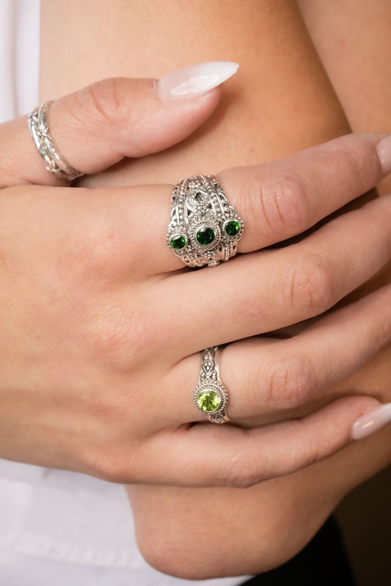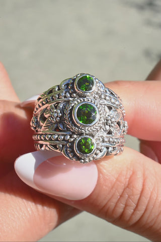 Sterling Silver Leaves Chrome Diopside Ring™