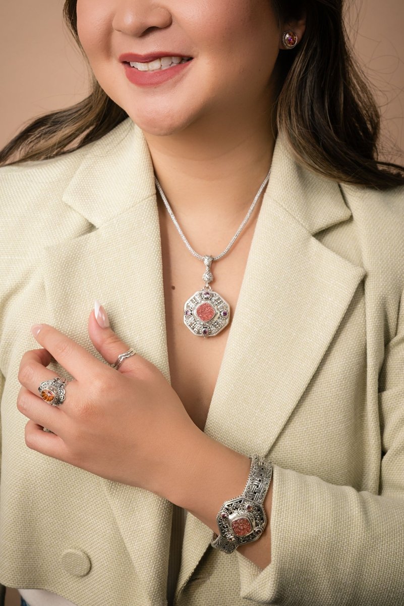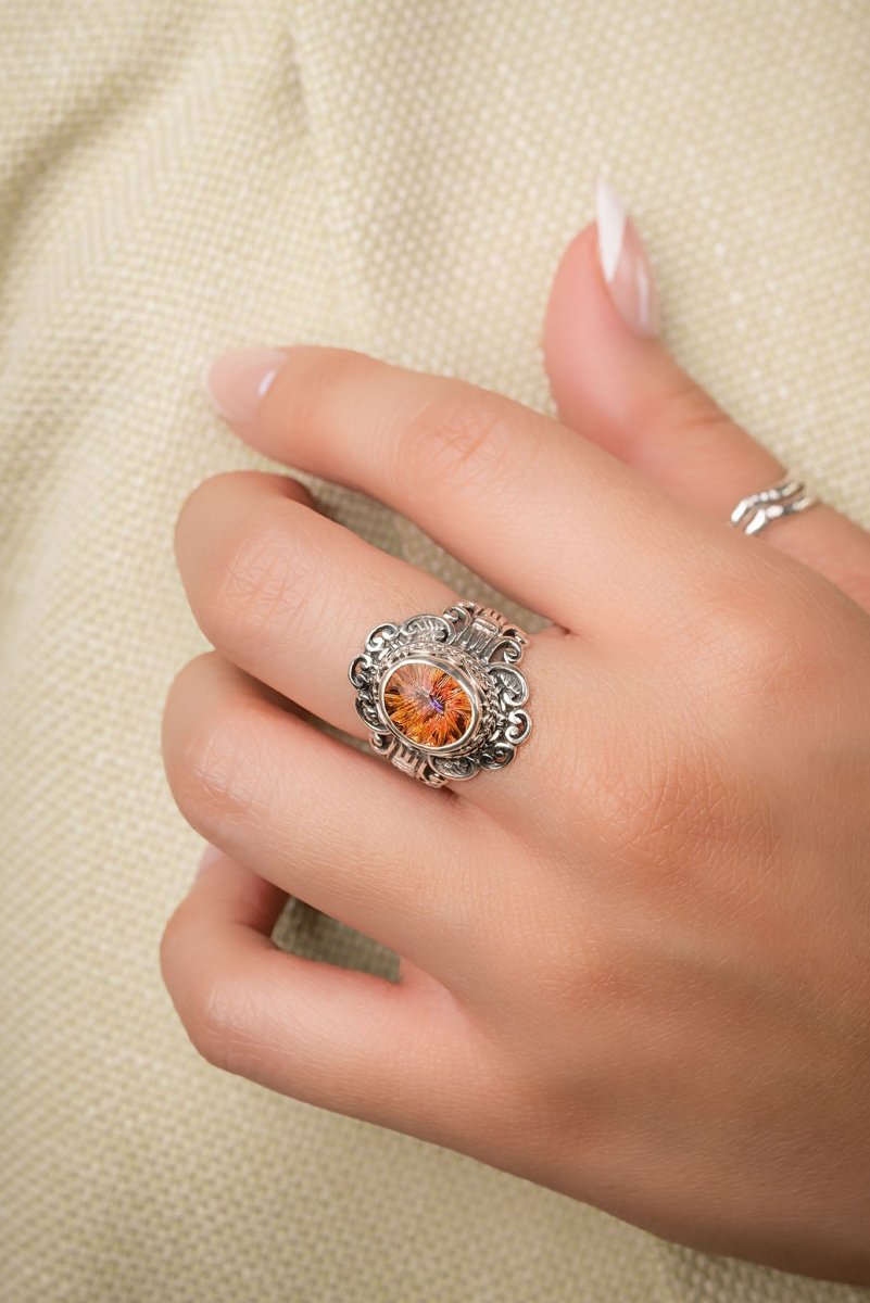 I love this ring so much that I bought two! I plan on giving my daughter the other one for Christmas! The design of this ring reminds me so much of the ancient Mayan carvings that my daughter and I observed at many of the sites we visited on our trip to the Yucatán area of Mexico. The beautiful Odyssey Twilight Ecstasy is like a magical Citrine , my daughter’s birthstone. This is a perfect Christmas present!