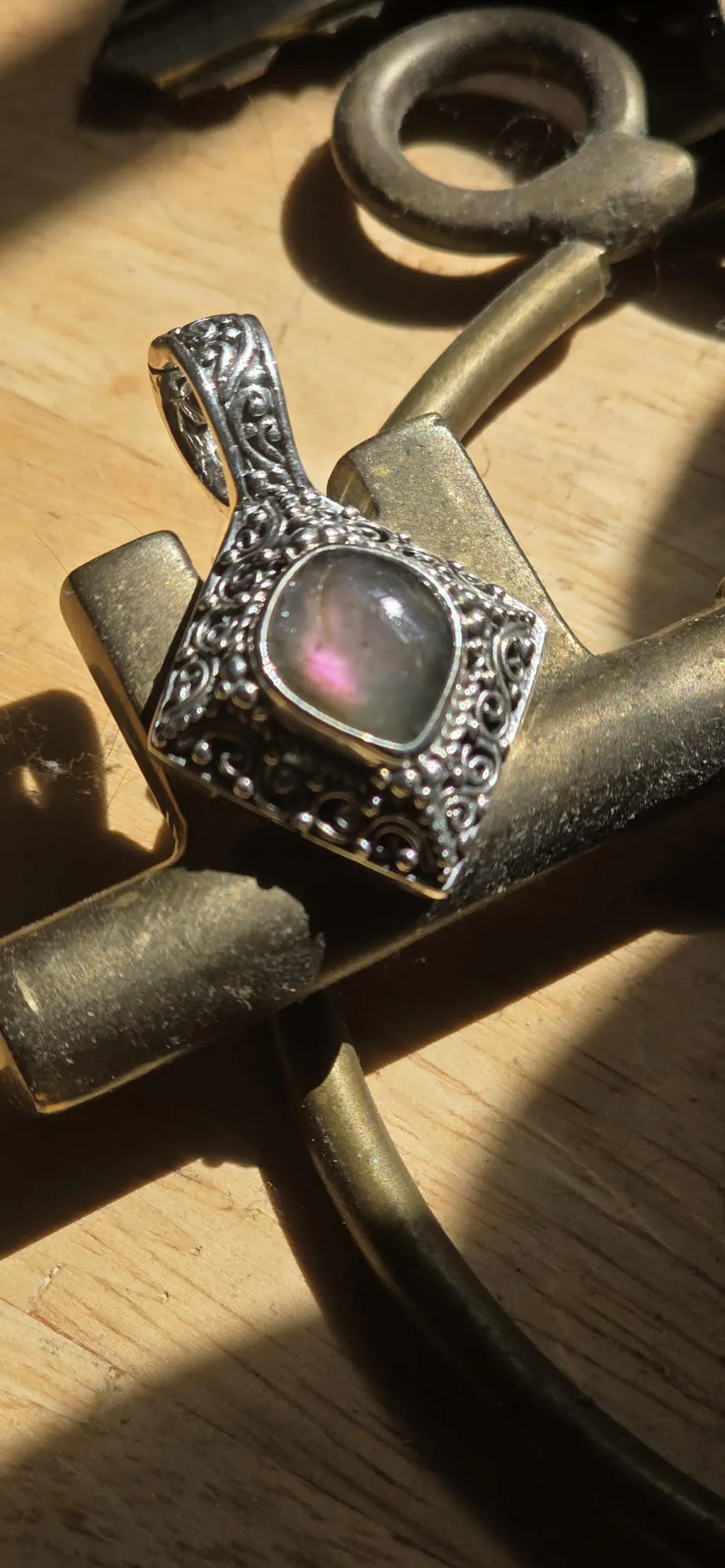 This purple labradorite is lit from within. It looks positively ethereal. It displays such amazing color and flash. I will truly treasure this piece!