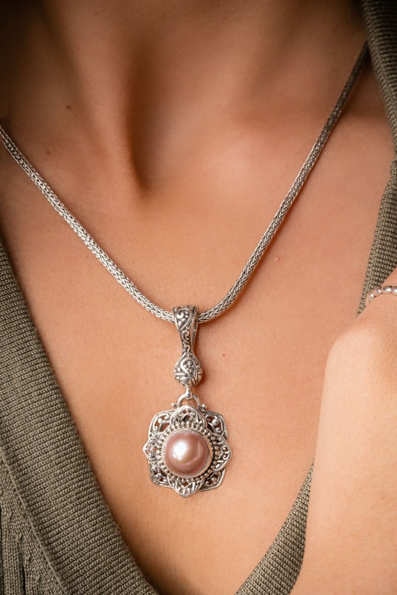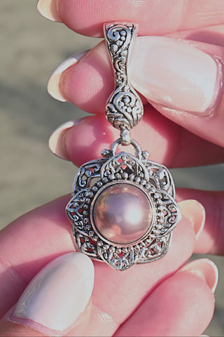 Sterling Silver Tree Of Life Rose Gold Freshwater Mabe Pearl Single Stone Pendant With Magnetic Enhancer Bail™