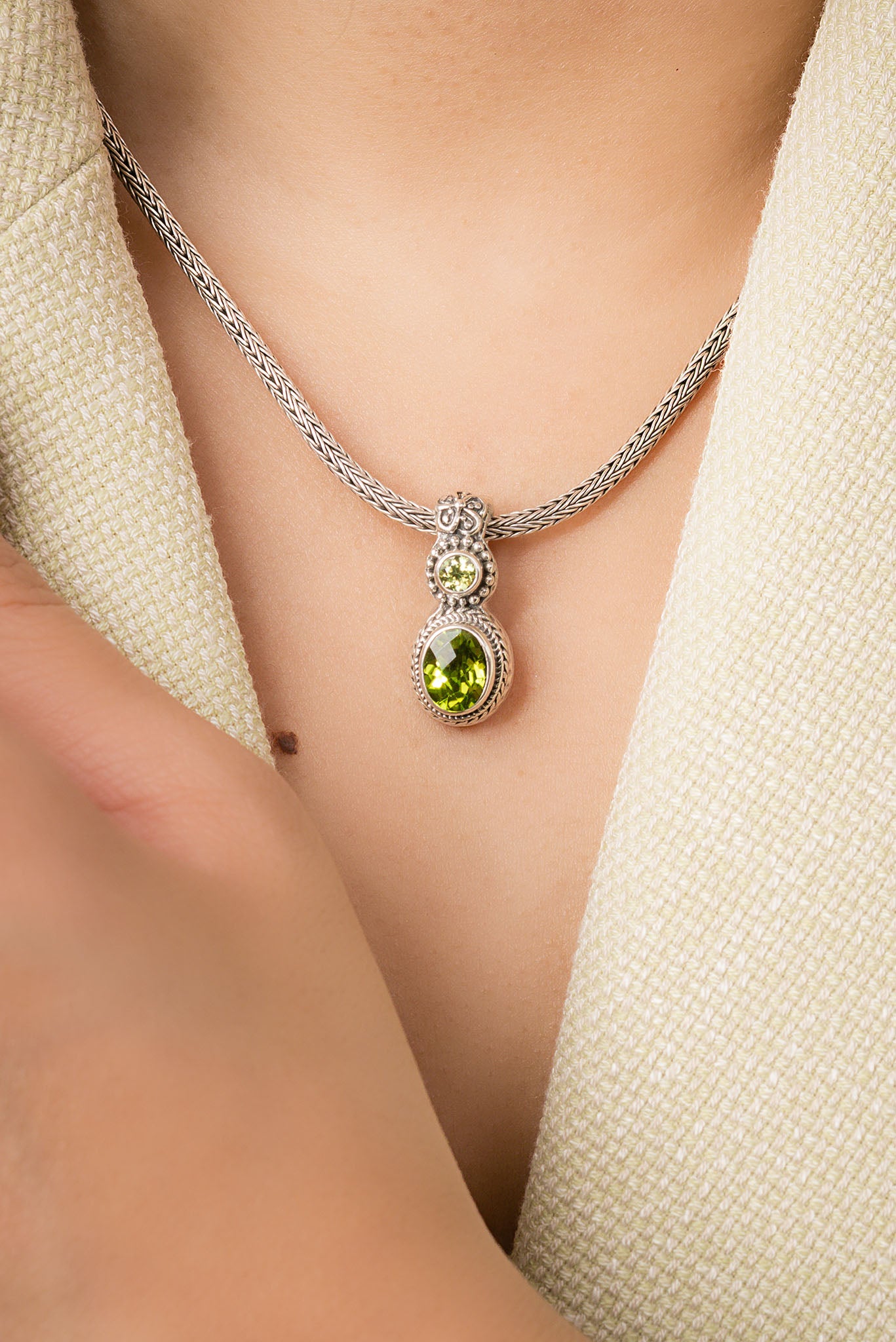 Sterling Silver Frangipani Peridot Multi Stone Pendant With Incorporated Enhancer Bail™