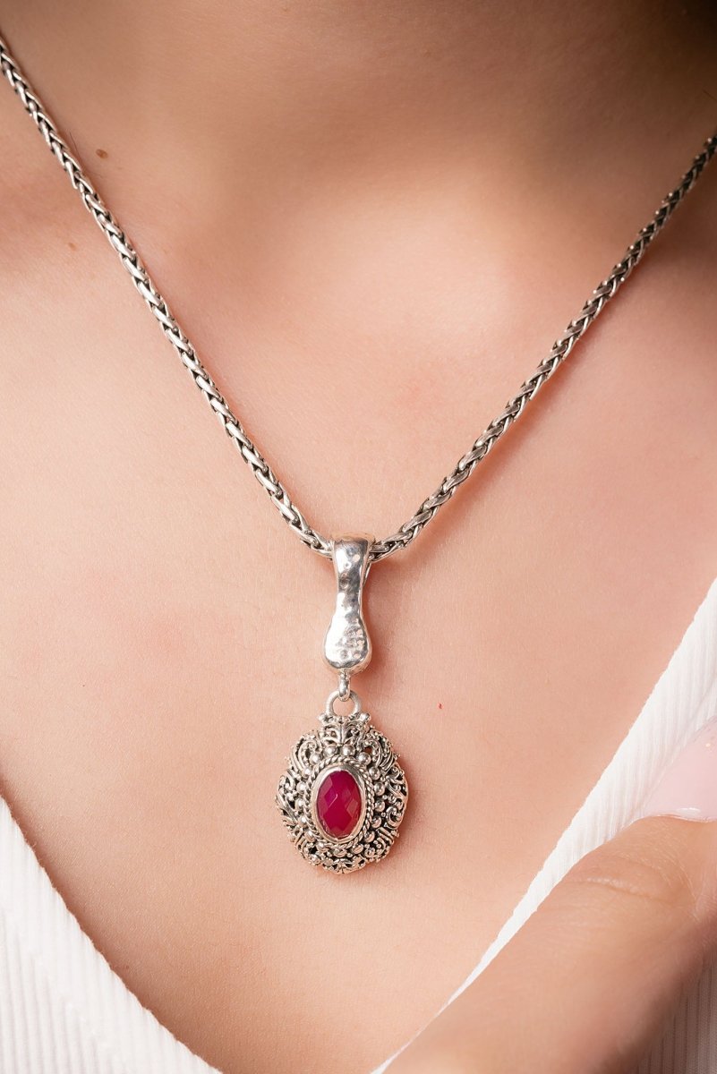 Sterling Silver Tree Of Life & Hammered Red Currant Quartz Single Stone Pendant With Magnetic Enhancer Bail™