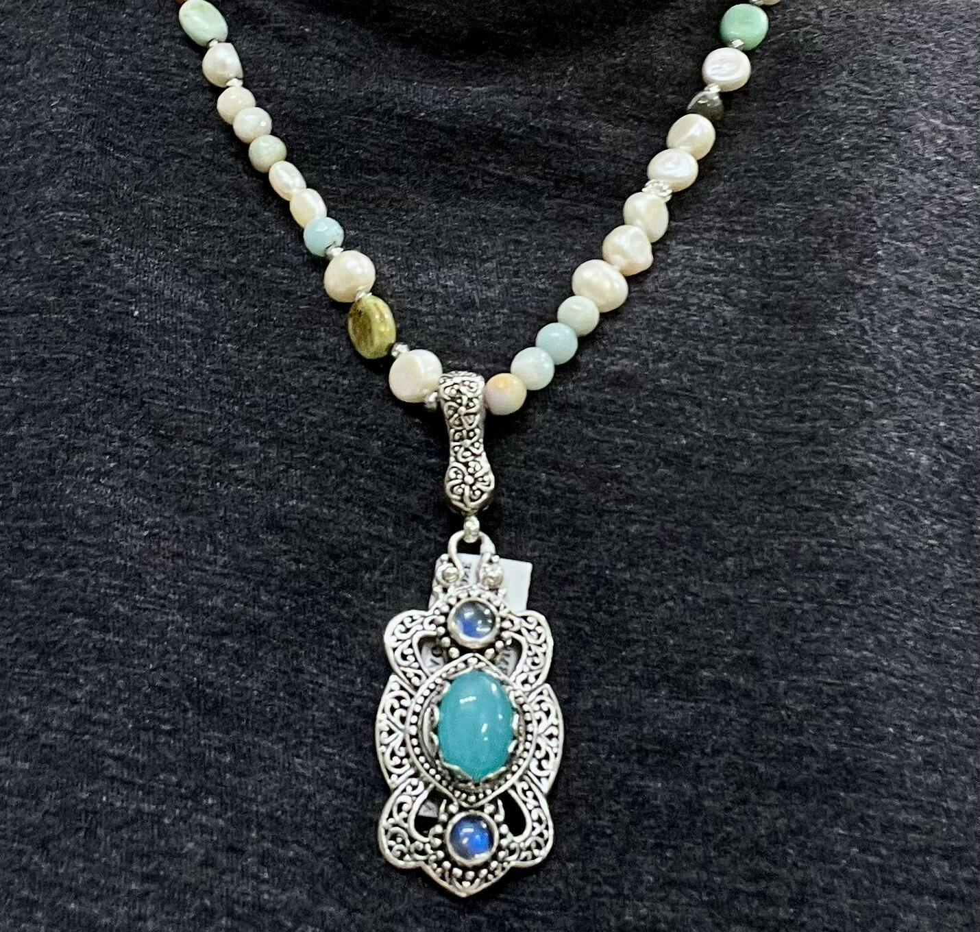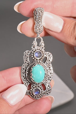 UR Nature to Come Through Pendant™ in Amazonite & Rainbow Moonstone