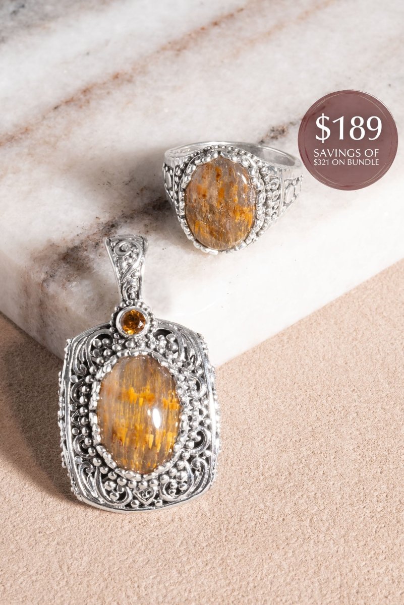 Cacoxenite Pendant Ring Bundle