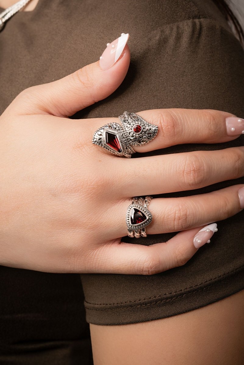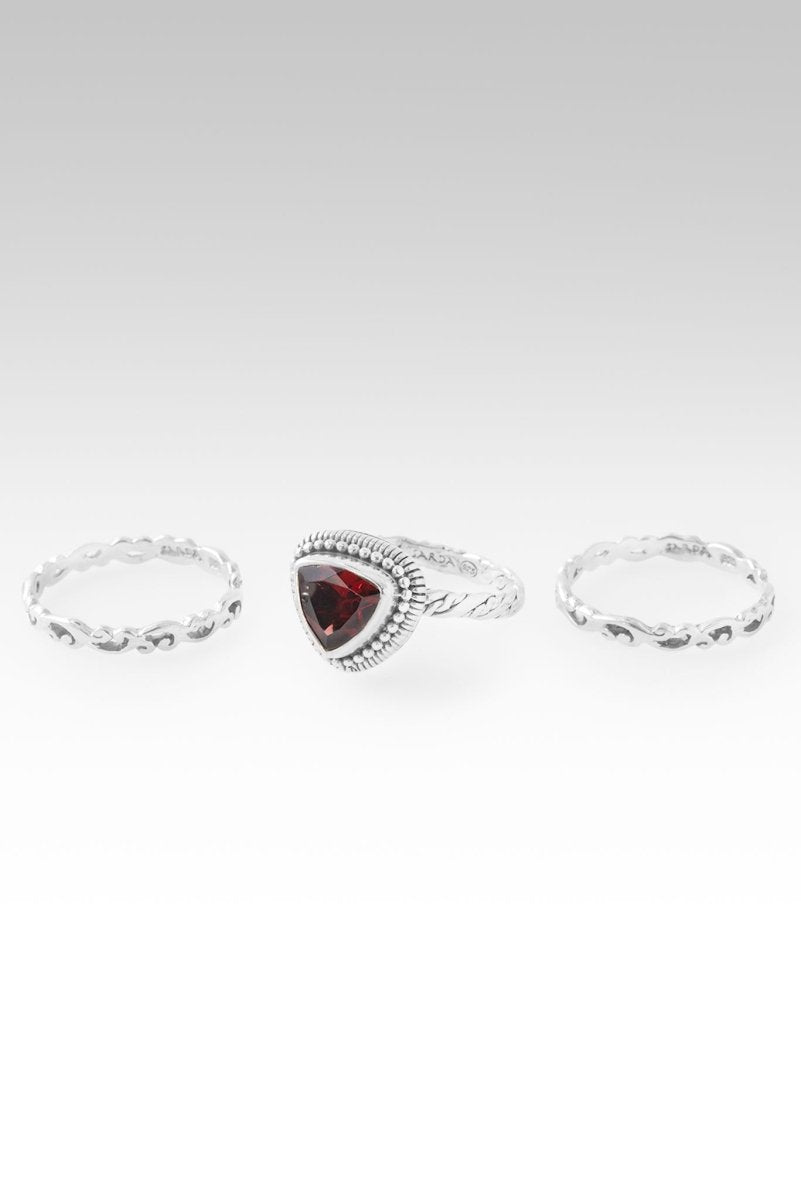 Sterling Silver Tree Of Life Garnet Stackable Ring Set Of 3™