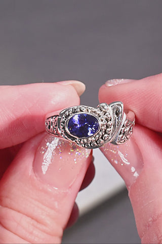 Sterling Silver Tree Of Life & Hammered 7x5mm Tanzanite Ring™ 0.80 Ct.