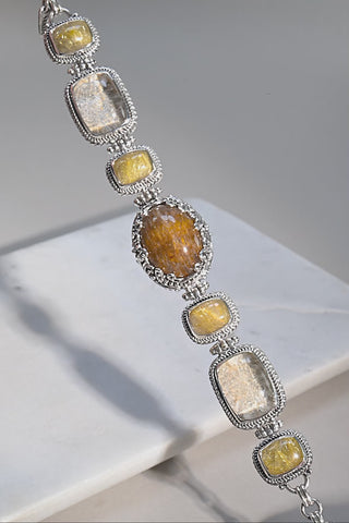 Sterling Silver Tree Of Life Cacoxenite, Garden Quartz & Gold Rutilated Quartz Adjustable Multi Stone Lobster Claw Bracelet™